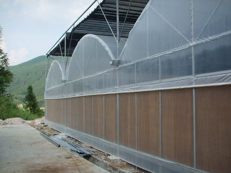 該系統(tǒng)具有降溫效果好、操作簡(jiǎn)單等特點(diǎn),通過(guò)濕潤(rùn)凈化的空氣更有利于室內(nèi)作物的生長(zhǎng),若配合遮陽(yáng)系統(tǒng)綜合使用,降溫效果更為顯著。考慮冬季溫室的保溫,應(yīng)在濕簾墻外側(cè)加裝一層保護(hù)膜或齒條外翻保護(hù)窗。
