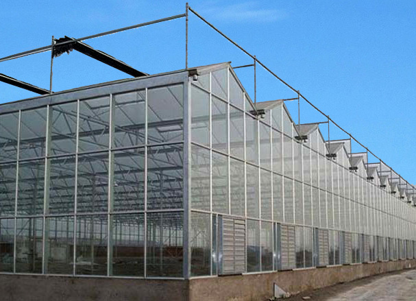 文絡溫室的骨架采用鋼架和鋁合金構成,透明覆蓋材料為4mm厚平板玻璃。溫室屋頂形狀和類型主要有多脊連棟型和單脊連棟型兩種。