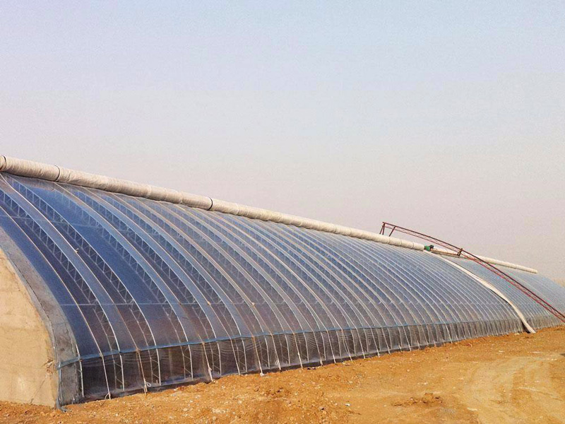 前坡面夜間用保溫被覆蓋,東、西、北三面為圍護(hù)墻體的單坡面塑料溫室,統(tǒng)稱為日光溫室。其雛型是單坡面玻璃溫室,前坡面透光覆蓋材料用塑料膜代替玻璃即演化為早期的日光溫室。日光溫室的特點(diǎn)是保溫好、投資低、節(jié)約能源,非常適合我國經(jīng)濟(jì)欠發(fā)達(dá)農(nóng)村使用。